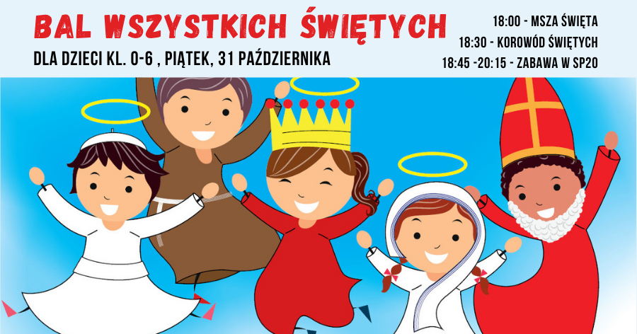 Zapraszamy dzieci na Bal Wszystkich Świętych. Odbędzie się on w piątek 31 października. W tym roku do współpracy dołączył Samorząd Uczniowski SP20 oraz wodzirej, który poprowadzi dzieci przez gry i zabawy.